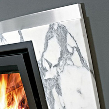 Вертикальный мраморный камин из мрамора Giallo Reale. Может быть пристенным и угловым. Сочетается с топкой Stile с плоским и полукруглым стеклом.